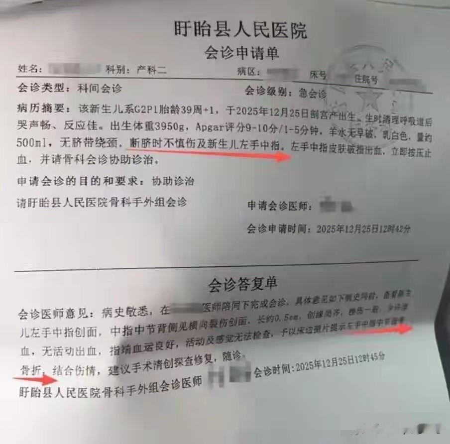据《红星新闻》报道,事情发生在2025年12月25日上午10时30分,江苏省盱眙县人民医院。