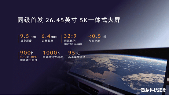 26.45英寸5K一体式大屏,画幅比例32:9,全面适配视频资源播放要求。5K屏幕分辨率同级最佳,显示屏灰态亮度小于0.5nit。此外,大屏经过900小时零下40°到95°循环冲击测试,1000小时的常温稳定性测试,95°高温唤醒测试,好用更耐用。为了保证绝佳的屏幕观感,还采用了大视角补偿膜技术。