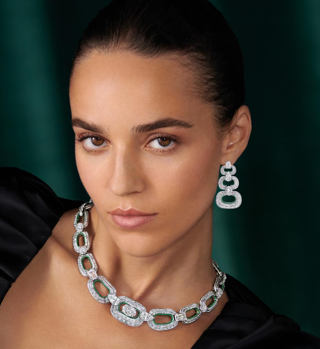 品牌巧用钻石配以利落流畅的线条,将星辉化为艺术,在至暗冬夜里绽放最耀眼的光芒。系列作品柔软灵活地绕于颈项、垂挂在耳际、温柔服贴于指腕间,尽显华丽之美,将珠宝间摄人心魄的光芒勾勒成最璀璨的永恒