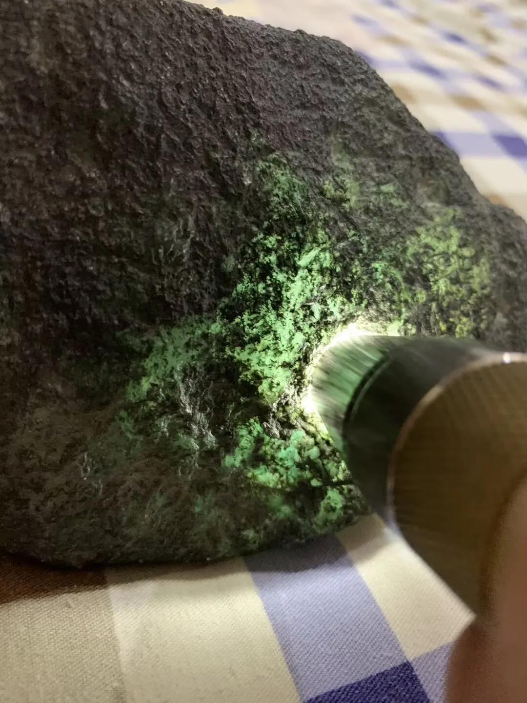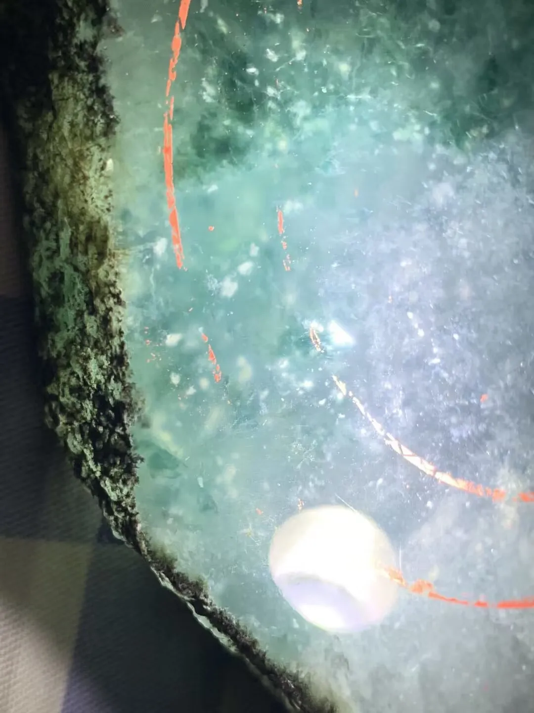 这是一块正场莫西沙的料子,咱们先看一下没有切之前,表现,皮壳都是什么样子的。