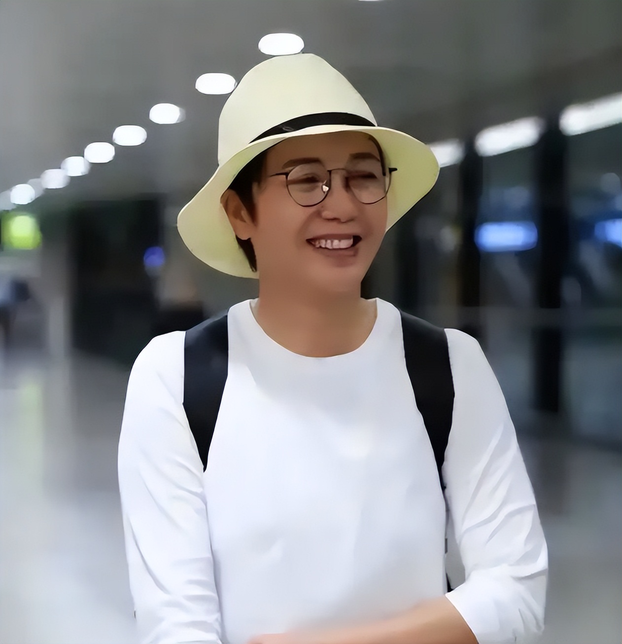 她穿得特别朴素,宽松的针织衫、深色长裤,脚上是平底鞋,有时候戴顶黑帽子,头发扎成低马尾,素着一张脸,完全没有明星架子。