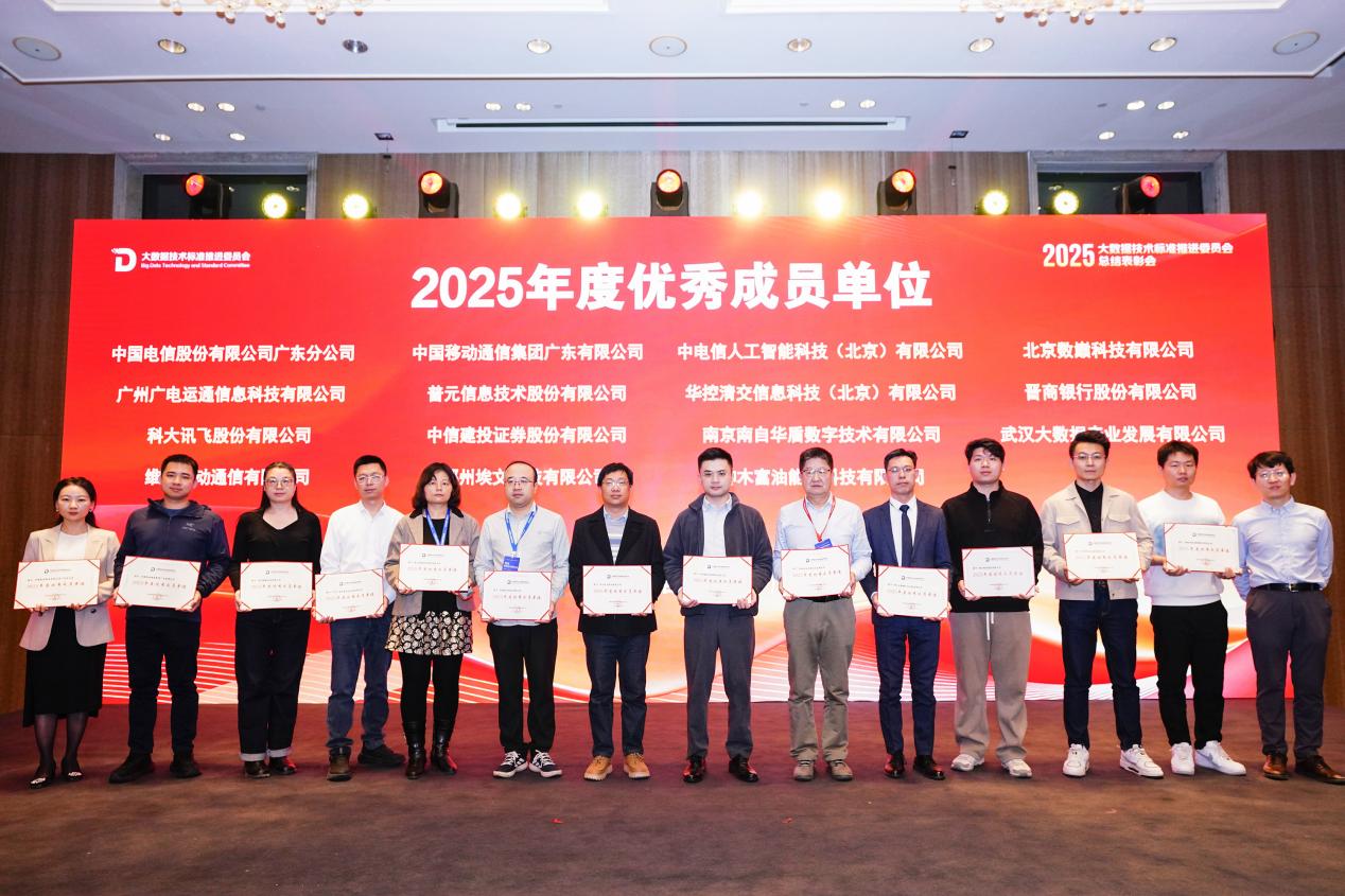2025年12月18日晚,中国通信标准化协会大数据技术标准推进委员会(CCSA TC601)召开2025年总结表彰会议。会议全面总结了2025年度大数据与数智化技术标准建设与产业发展成果,表彰了在标准预研、应用创新、产业推广等领域表现突出的优秀单位与个人。