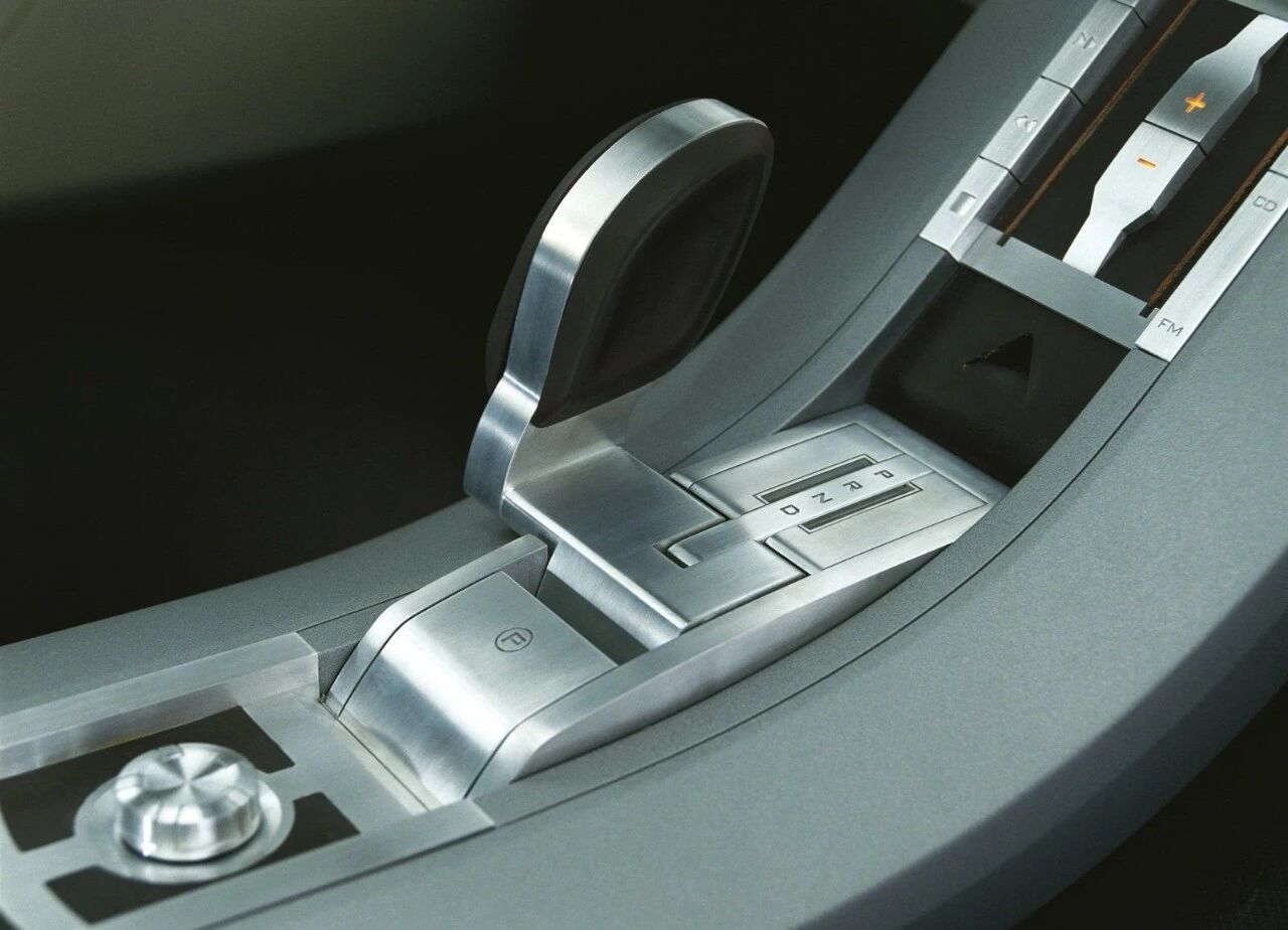 车尾同样是分体式天地尾门设计,上掀下开,结构与后来的揽胜运动版高度相似,几乎提前预言了量产车的设计。车头采用“碎冰”样式灯罩与双氙气大灯,灯光可随方向盘转动,提升弯道照明。车外后视镜更是被摄像头取代,这在当年是绝对超前的配置,只可惜20多年过去,摄像模块已经遗失。