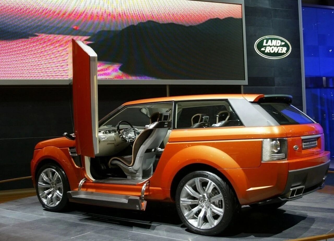 车身采用极为鲜艳的维苏威橙色,在2004年底特律车展上还被临时改名为“Oh, Range!”,象征路虎向公路化、高性能豪华SUV转型。这台三门概念车配备全景玻璃车顶、22英寸巨型轮毂、固特异轮胎与Brembo制动系统,气场完全不输当代超跑。