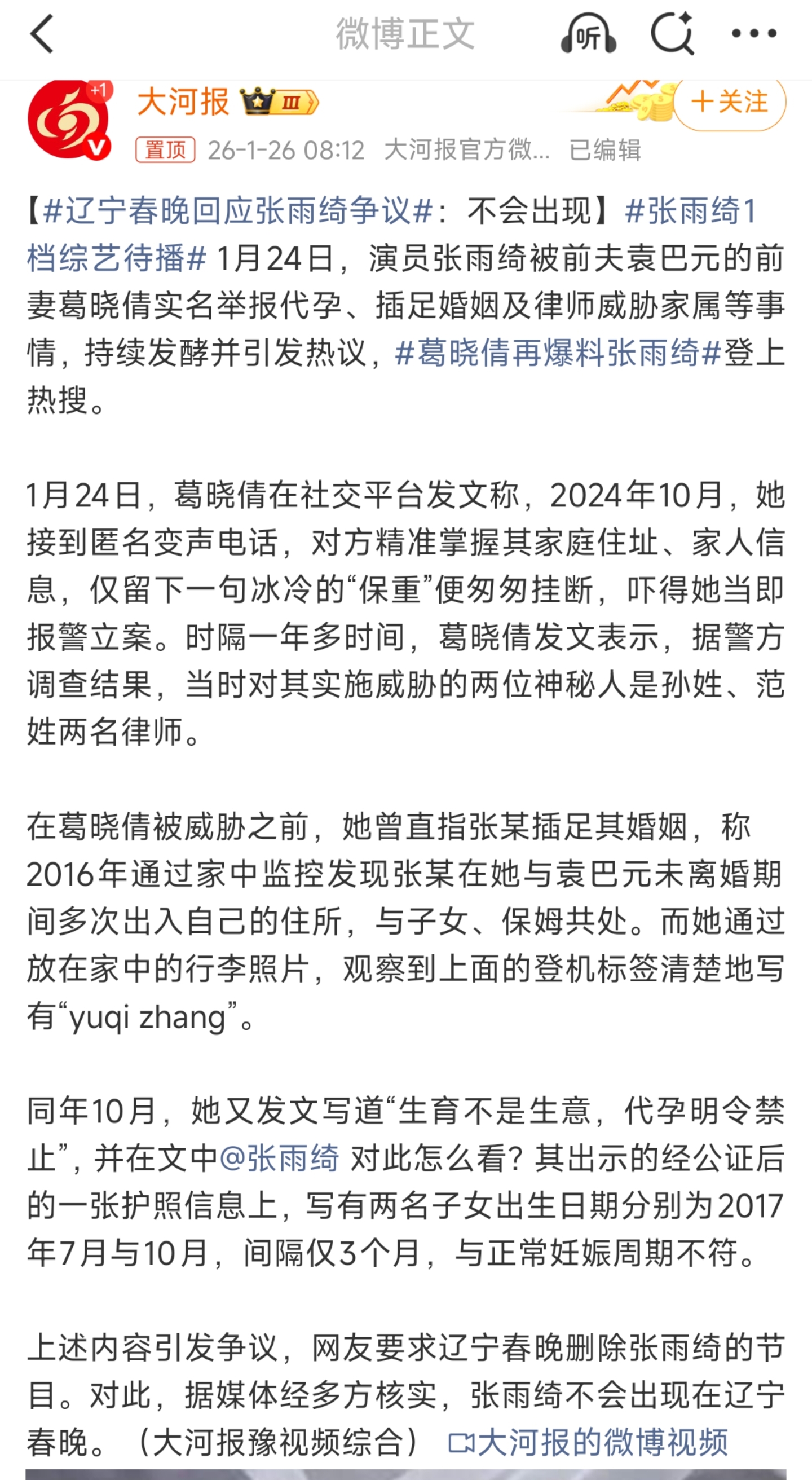 #辽宁春晚回应张雨绮争议#
