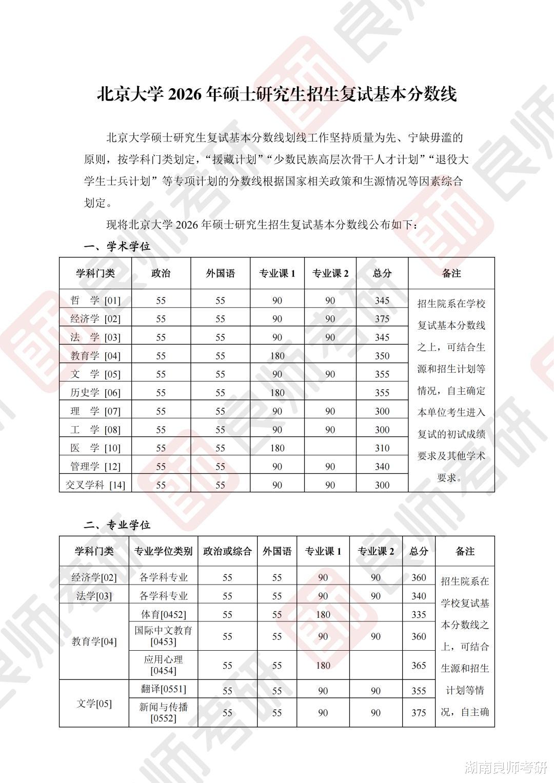 北京师范大学一、学校复试基本分数线(学术学位类)