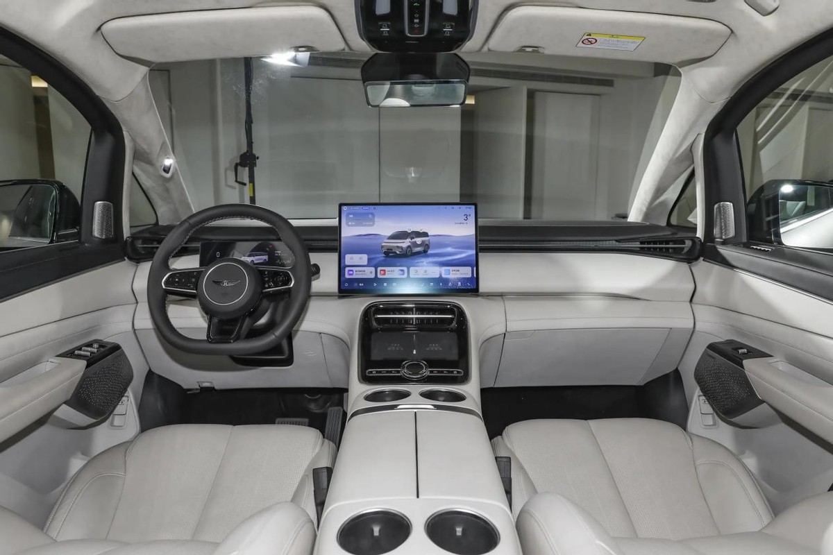 最后动力部分,吉利银河V900基于GEA Evo平台打造,配备了1.5T增程器+双电机组成的动力总成,综合最大功率可达340kW,峰值扭矩523N·m。续航方面,按照版本配置不同,综合续航分为1180km和1220km两种版本。最主要底盘部分,吉利银河V900中高配车型还会给到CCD电磁阻尼、空气悬架及主动魔毯悬架系统等配置,进一步提升操控性和舒适性。