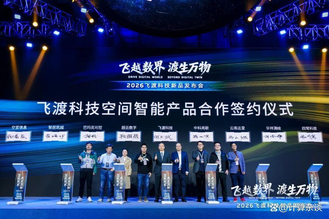 发布会尾声,一场签约仪式将气氛推向高潮。飞渡科技与丰图科技、中科闻歌等企业签署战略合作协议。多方将在技术研发、场景落地、生态共建等领域深度协同,共同推动空间智能技术在智慧城市、工业互联网、低空经济等领域的规模化应用。这不仅是商业上的合作,更是一个开放共赢的产业生态的雏形。
