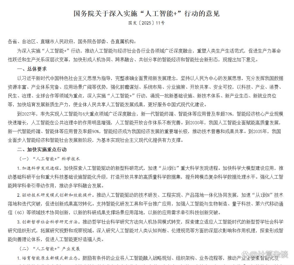 《数据要素×行动计划》、《“人工智能+”行动三年计划》政策文件