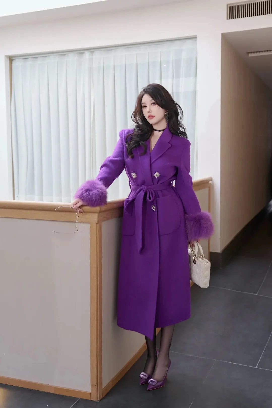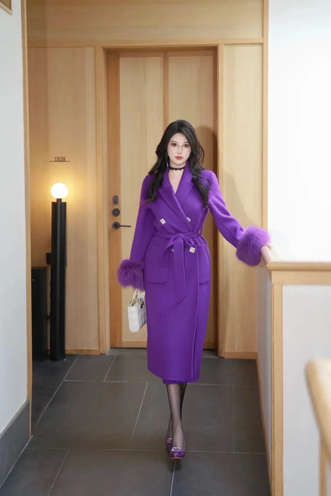 夜色渐深,穿大衣的人裹着衣衫往家走,风里带着热红酒的甜,毛绒袖口蹭过脸颊,暖得让人想笑。路灯的光落在绒面上,那抹紫泛着软而亮的弧,像把整个秋冬的温柔都裹在了身上。原来一件大衣从不是衣柜里的布料,是藏着温度、细节和节奏的容器——它接住了清晨的凉,裹住了午后的暖,也托着夜晚的甜,像个软乎乎的拥抱,陪着人走过日子里的每一段轻与重。那抹深紫,早已不是单纯的颜色,是秋冬里的一份妥帖,是穿搭里的一份松弛,是日子里藏不住的温柔。