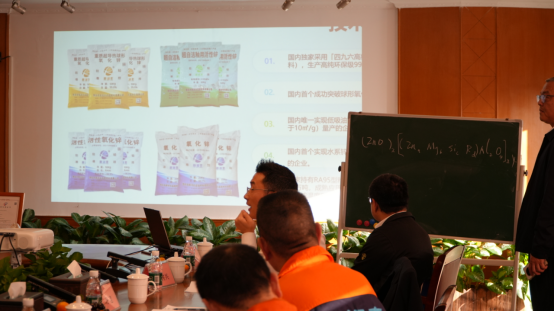在标准讲解环节,万建通过详实的 PPT 演示,系统解读了《陶瓷釉用活性氧化锌》企业标准的核心亮点。该标准最大的突破,是将新润丰 RA95 型等系列活性氧化锌的专利技术优势,转化为清晰、可检测、可复验的权威指标体系,让创新技术真正落地为可推广的行业规范。