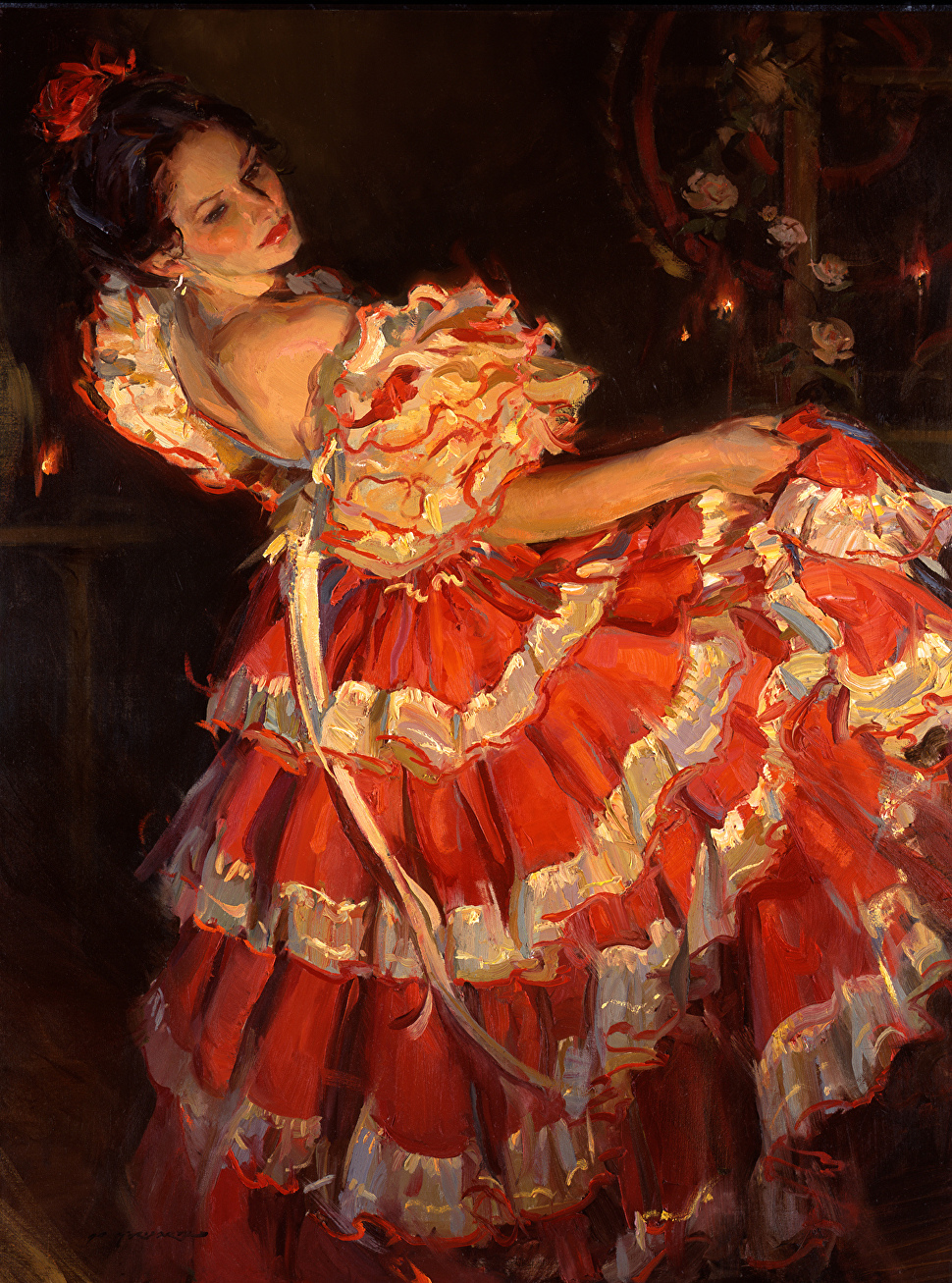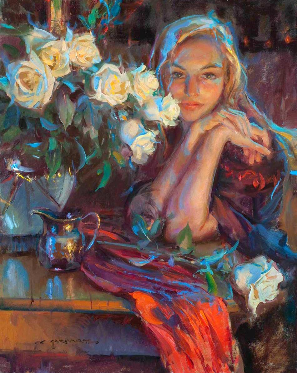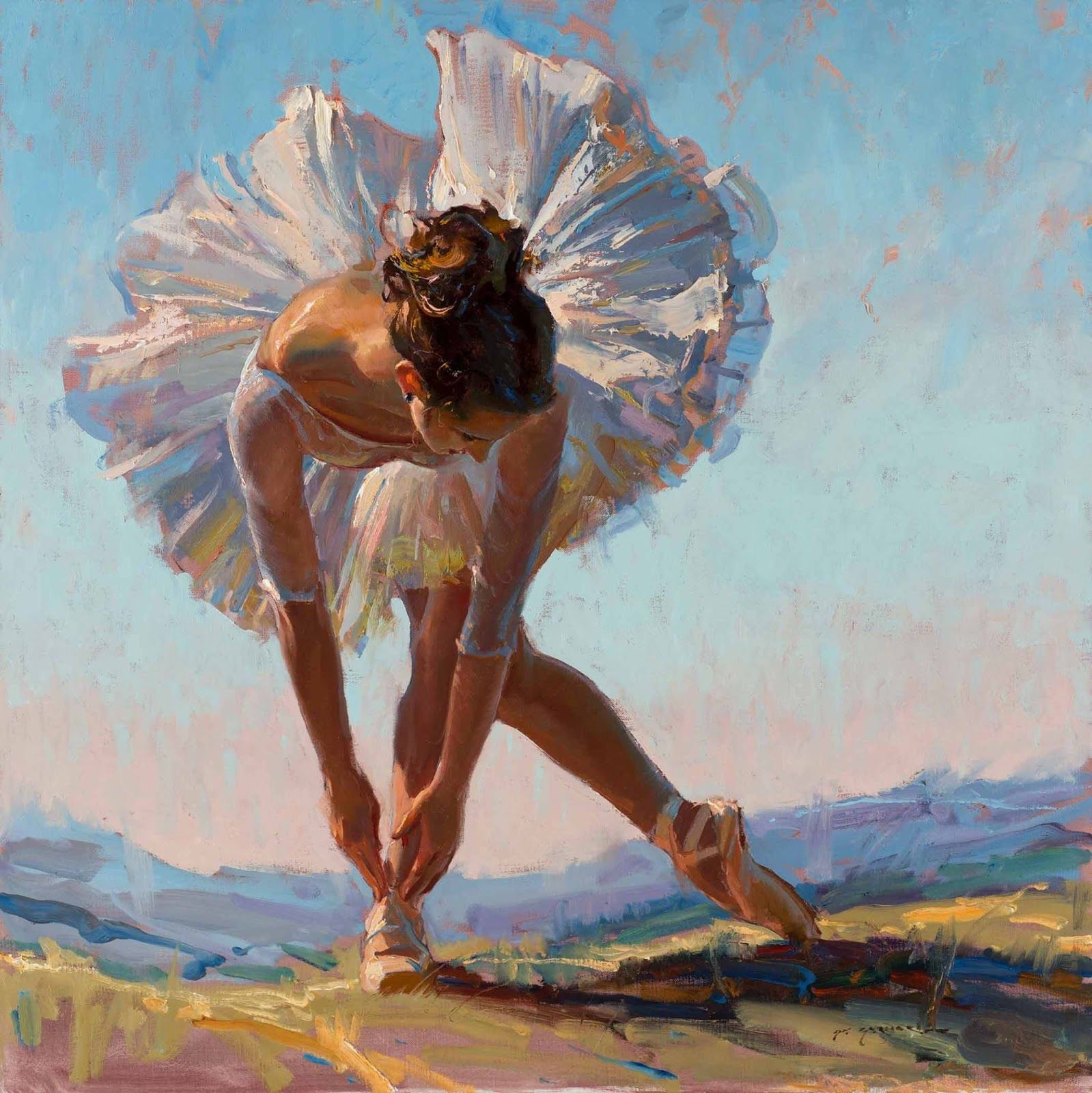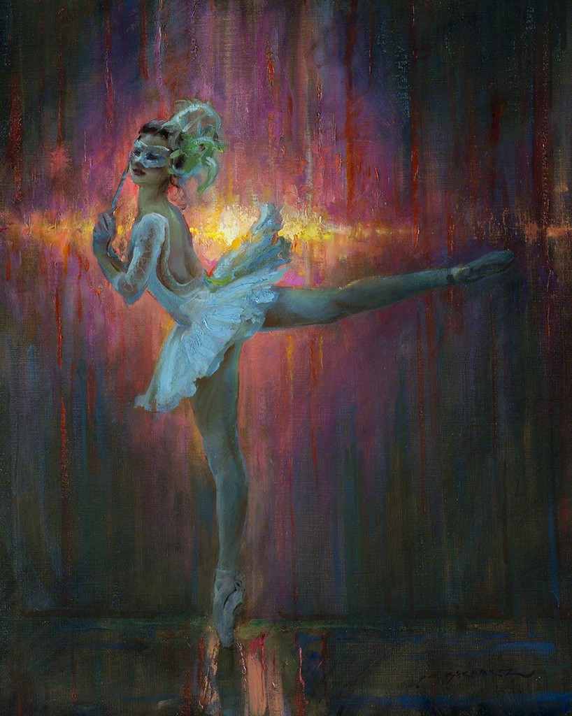 深受俄罗斯大师如费钦、列维坦及萨金特等影响,以油画擅长人物肖像、风景与芭蕾舞者主题。他的芭蕾系列作品捕捉舞者优雅动态、柔美光影与情感深度,笔触松弛而富有表现力,传达奉献与诗意之美。