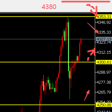 1、黄金上周跳水后,到今天一路回升,涨势之快,幅度之大。又来了4353附近,上方再次突破,看向4380的阻力承压。