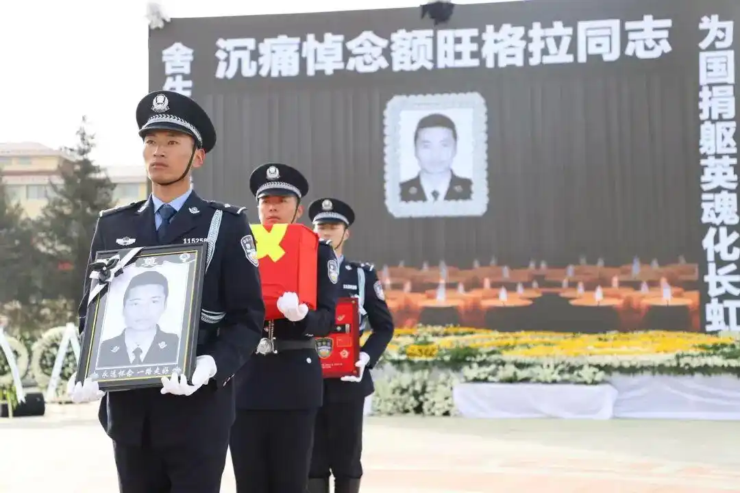 3月20日的追悼会上,很多群众自发前来送别,他们手里拿着哈达,眼里含着泪水,向这位英雄民警深深鞠躬。额旺格拉生前的警号“114382”被永久封存,这个警号,承载着他的忠诚与担当,承载着他对公安事业的热爱,也承载着群众和战友对他的思念,从此,这个警号不再响起,却永远刻在大家的心里。