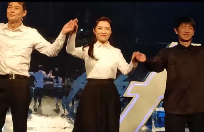 她戴着耳麦,眼睛盯着大屏,一会儿跟灯光说,这一束再提前两秒打,一会儿跟舞台说,这组演员上场速度再利索一点,她以前是站在台口,看着观众的那个人,现在是站在侧台,看着整台演出节奏的人。