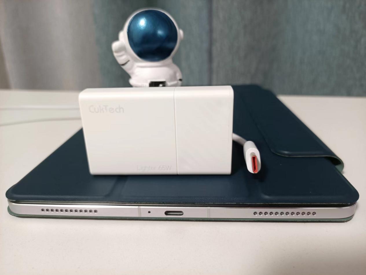 它可以持续输出65W的功率给笔记本电脑提供充足的电力保障,相比笔记本原厂自带的充电器,酷科65W氮化镓充电器大概只有它的四分之一,外出行走再也不会感到负重累累了。此外它还支持FCP、AFC、QC3.0、QC2.0、APPLE2.4A、PD3.0快充协议。不过对飕飕来说,此款充电器没有标配充电线是比较遗憾的。