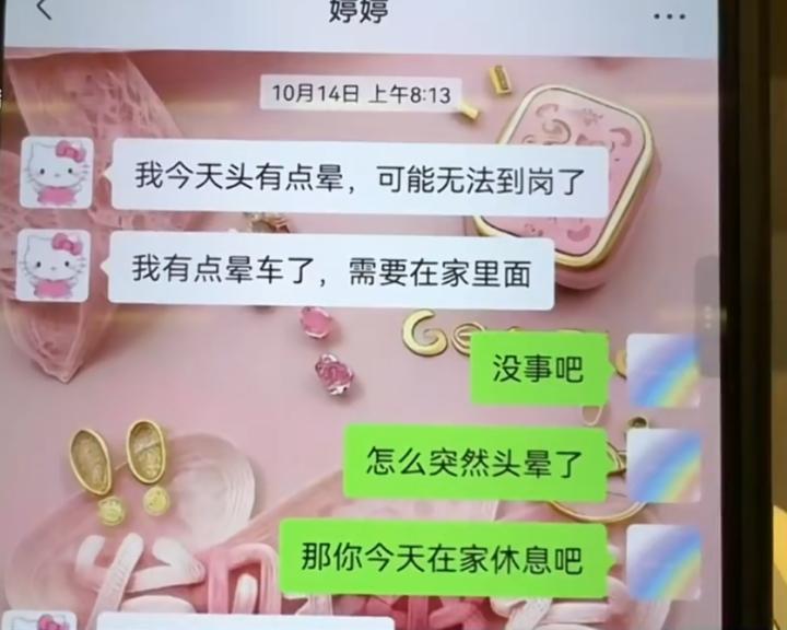 10月14日,蒋女士的同事收到她的微信消息,“今天有点头晕,可能无法到岗。”关心她的同事上门查看,发现蒋女士身体很不好,就把她送到了医院。