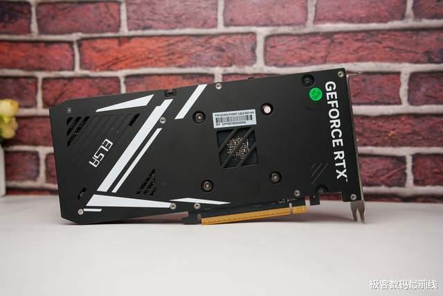 显卡背面是一块全金属的背板,上面印有艾尔莎的LOGO以及“GEFORCE RTX”的字样,同时旁边还有多个不规则的条纹装饰,外观这一块依旧很到位。