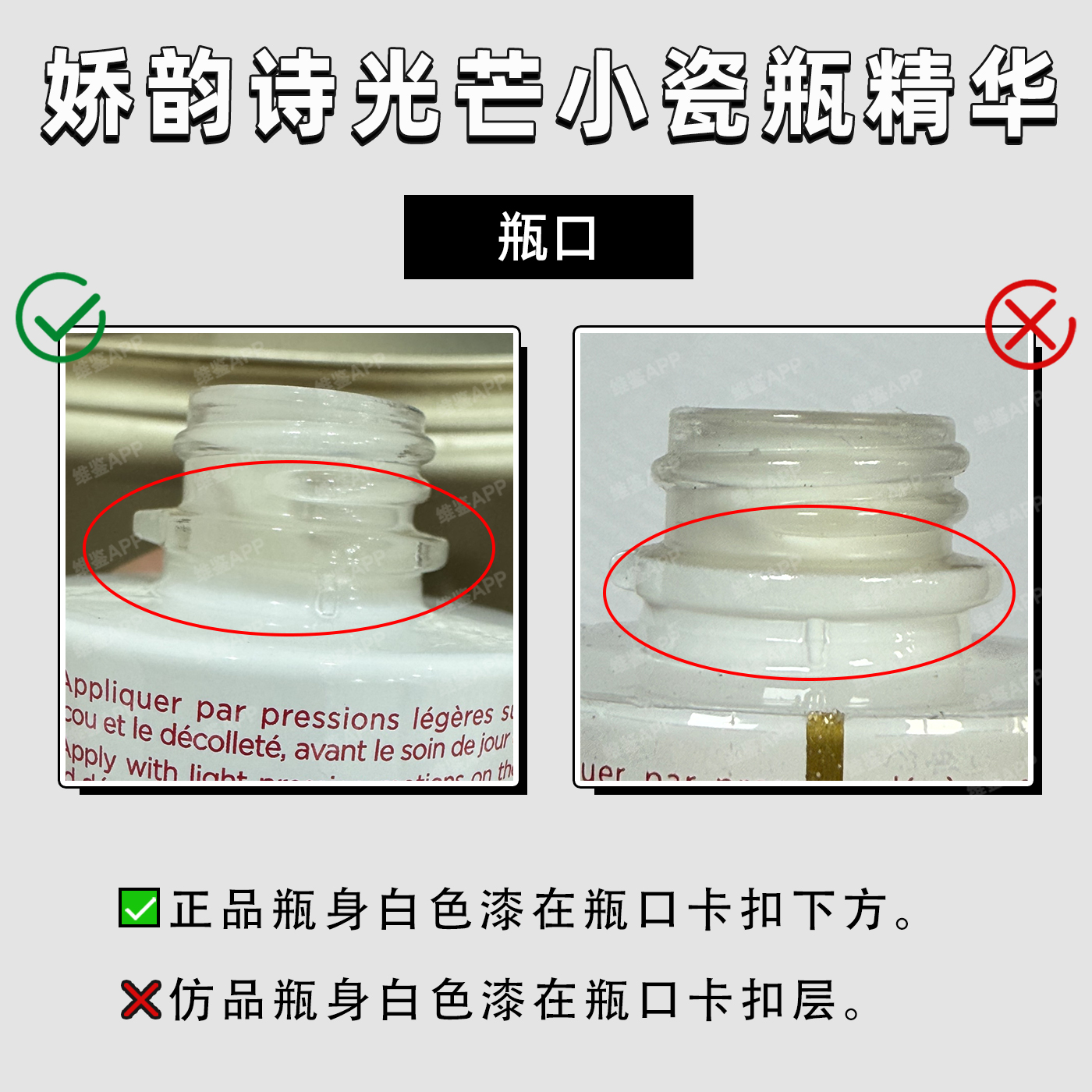 正品瓶身白色漆在瓶口卡扣下方