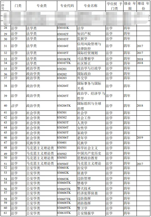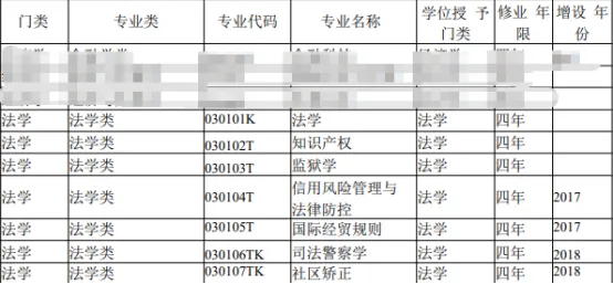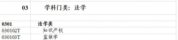 第二是法学类专业,包含若干个专业,2012年教育部的专业目录里包含三个专业,法学还有两个特设专业知识产权、监狱学。