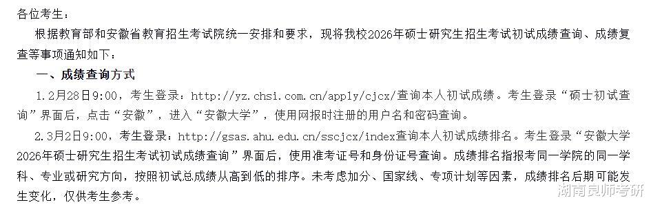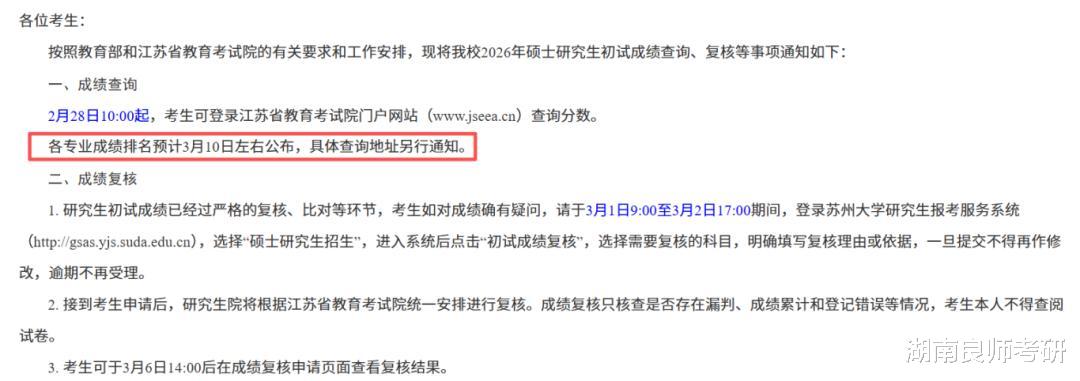 考生可于3月5日左右查询初试成绩排名。
