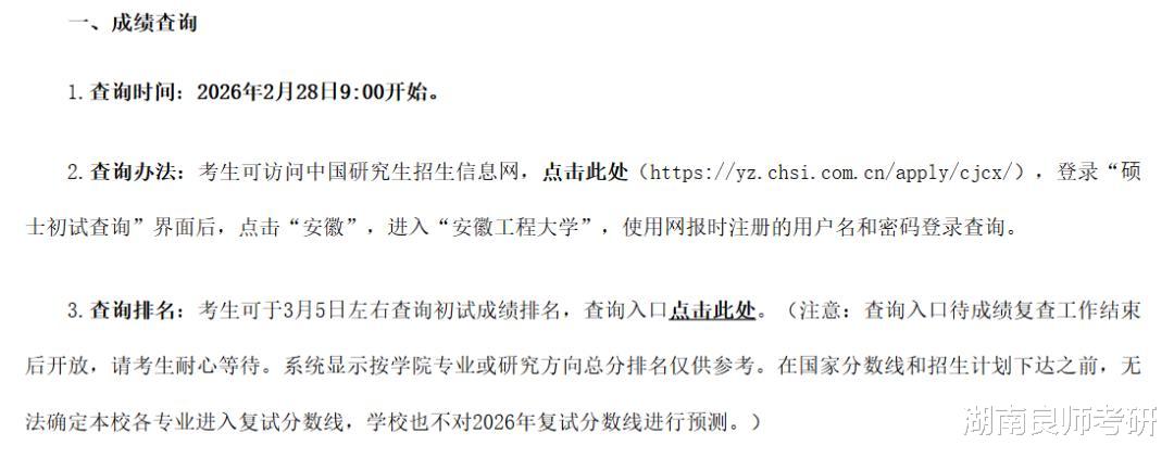 3月11日9:00后,登录“湘潭大学研究生初试成绩查询系统”进行查询。