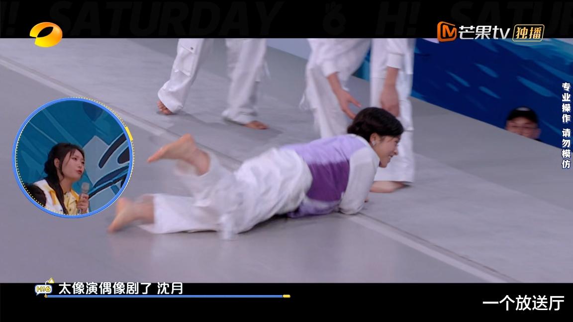 这还没有结束,接着沈月表演扔东西,王鹤棣在旁边说“好猛”。