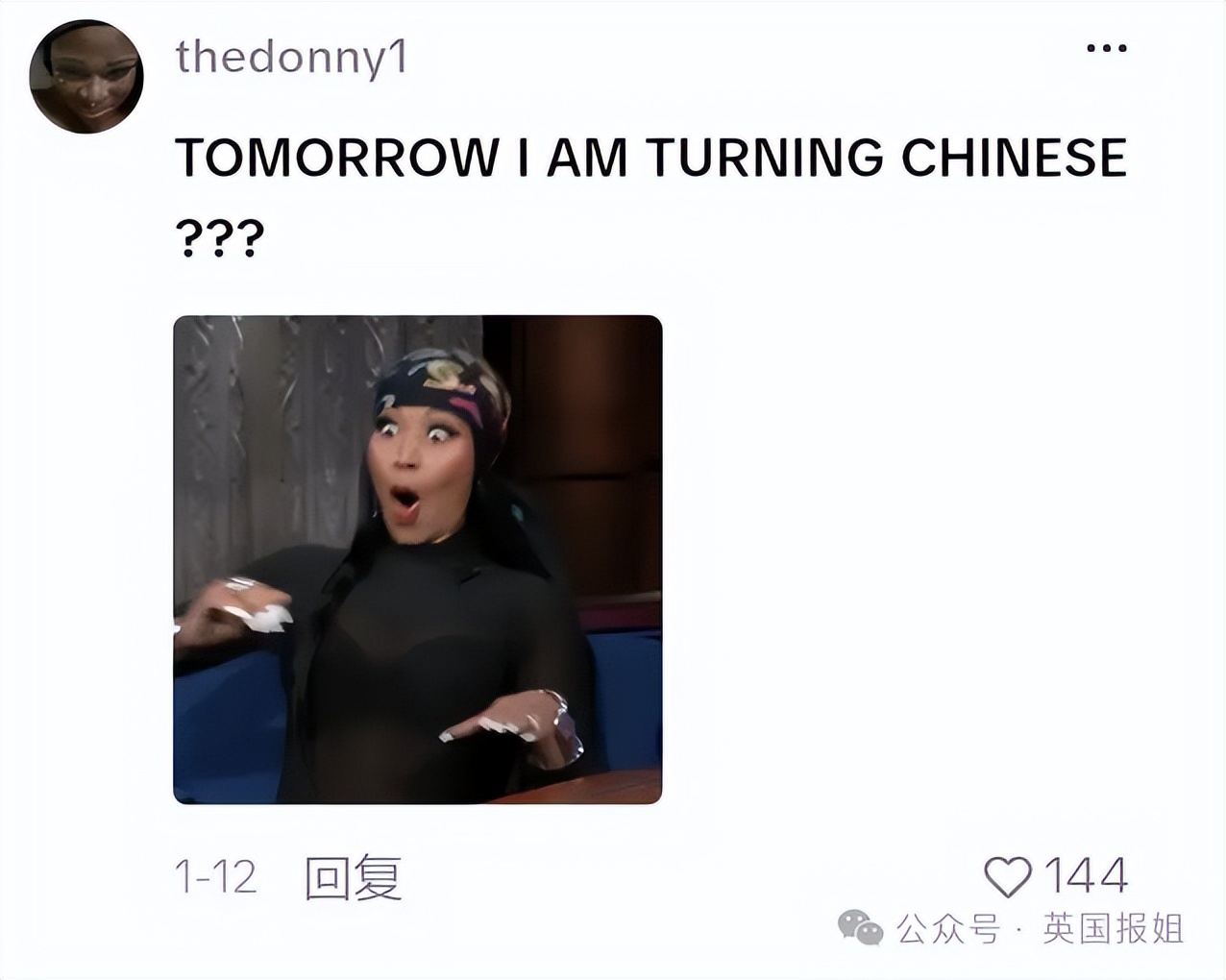 “OK现在我是非裔中国人了。”