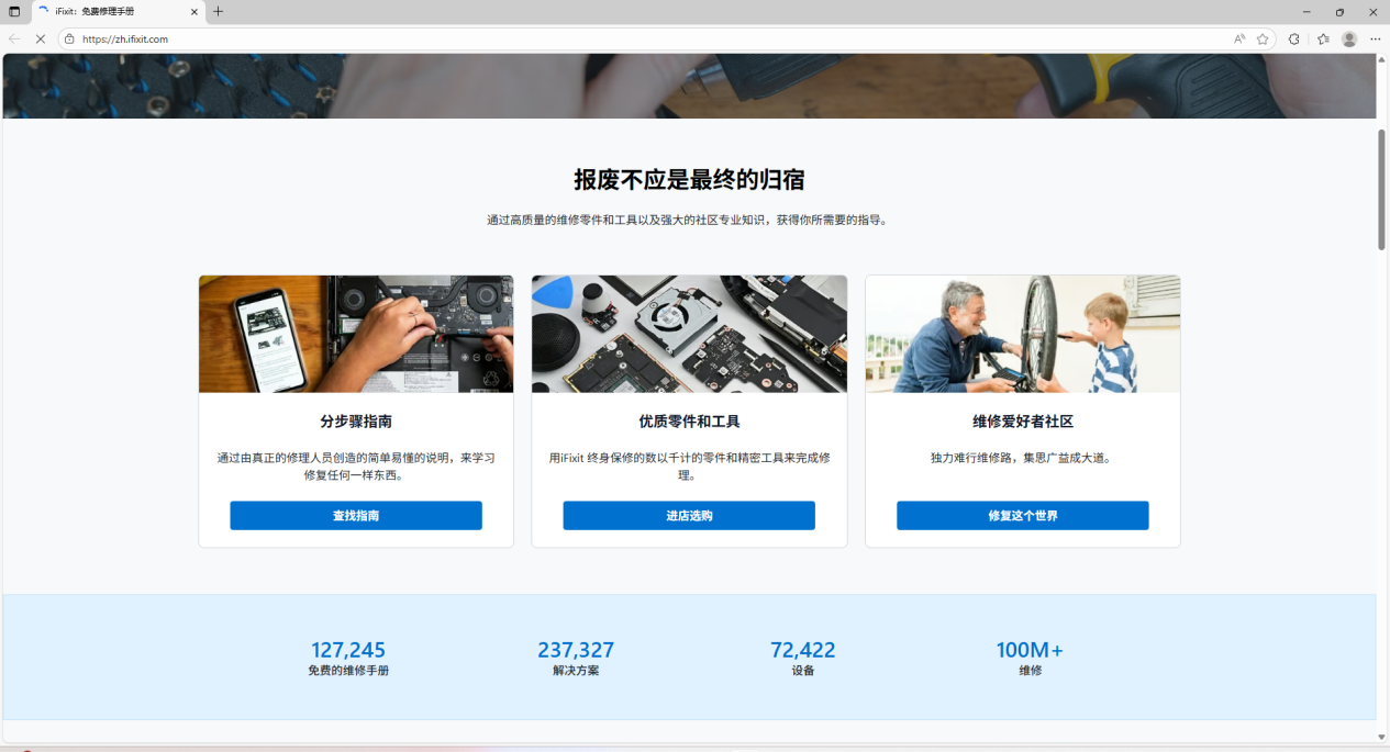 15、iFixit这是一个能教你维修任何设备的宝藏网站,无需花钱找人维修。网站收录了 65000 多个设备的维修教程,从电脑、手机等电子产品,到冰箱、空调等家用电器,甚至衣服、飞机都包含在内。所有设备类型分类清晰,找到对应设备后,跟着详细的分步教程操作,就能轻松完成维修。即使不维修东西,也能跟着教程学习技能,增加收入渠道。