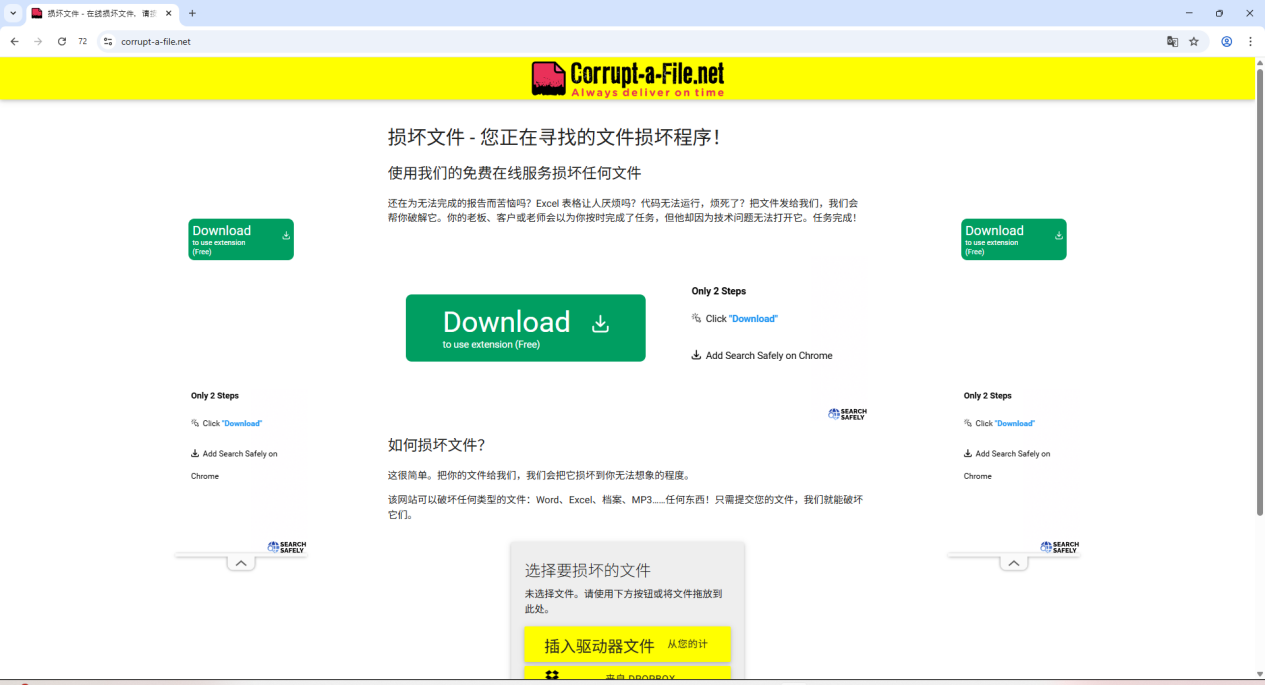 9、Corrupt-a-File这是一个专门帮你一键损坏文件的离谱小网站。如果你的作业没写完,论文赶不及提交,或者领导交代给你的方案还没弄好,只需要用它上传个文件,它就能立刻生成一个损坏打不开的版本,看起来和真的一样。