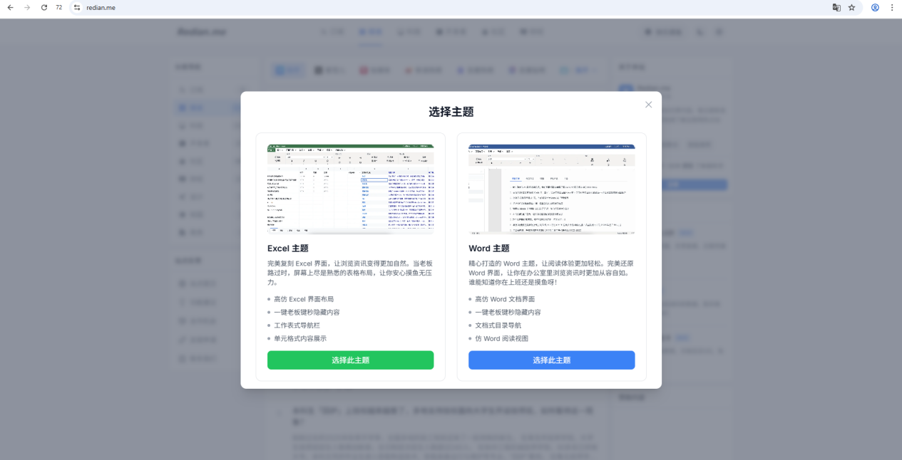 5、http://redian.me一个完美的摸鱼网站,这是一个可以实时看资讯,看视频的网站。在左侧可以看到使用方法,右侧点击就能看到想要的内容。并且下面可以切换不同的资讯类型,还可以切换成word页面,双击空格键全部隐藏,你就是个认真工作的好青年。