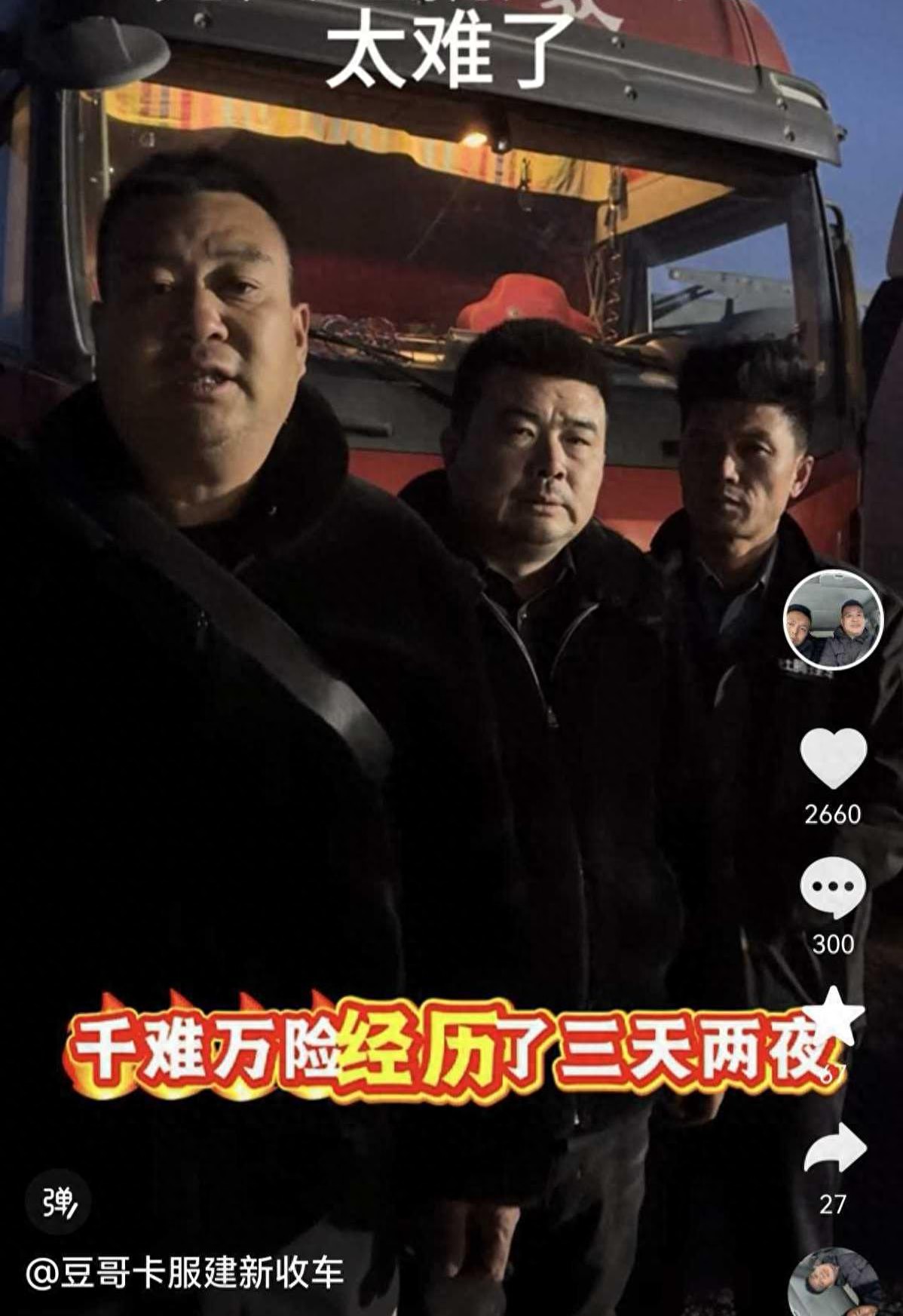 “赵大哥的车冲出了马路牙子,陷进了冻土里,我们几个兄弟好不容易将车救上了路面,却发现这辆大货车水箱漏水,一路上我们不停地加防冻液。”薛建新说,这次从榆林到新疆,再到内蒙古,万里大救援可谓历经艰险,“在无人区的三天两夜坚守下来了,最难的就是后半夜,温度零下20几度,刺骨的寒风吹到脸上像刀割一样。”