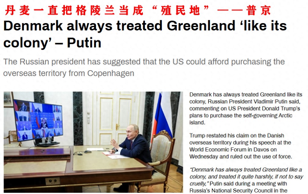 特朗普在达沃斯痛批丹麦忘恩负义之后,普京也在俄国家安全会议上抨击丹麦,称他们一直把格陵兰当作殖民地,其统治可以说是残酷。