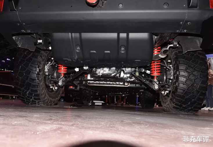 但也正是因为这个宽度,配合295/60 R20的AT胎和升高后的氮气减震,视觉压迫感极强。