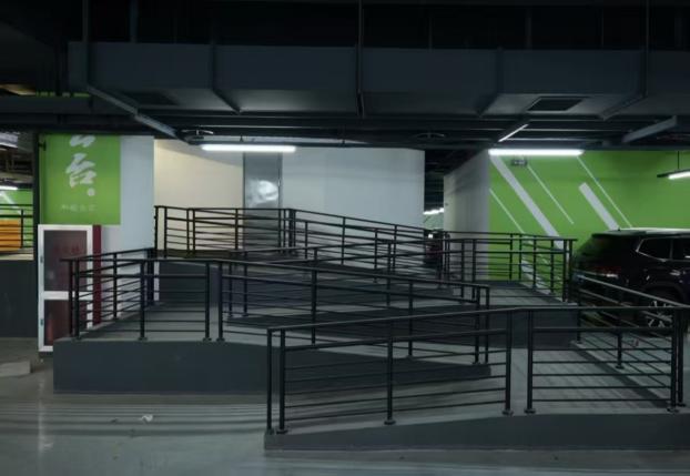 地下室电梯厅和地面高度差与建设要求相悖。《建设条件须知》中明确规定,地下室电梯厅地面建筑标高与地下车库地面标高若有高差,高度不应大于300mm,且需用坡度不大于1:12的无障碍坡道连接。但小区实际存在7级台阶,高差达1050mm左右,超出规定要求数倍。无障碍坡道,亦因高差问题,不得不出现数个“回头弯”。本为方便的无障碍设计,在实际中,却给老人及行动不便者增添负担。