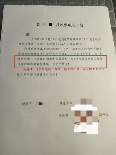据业主代表透露,西湖区住建局反馈该条款在设计阶段未开展相关论证,业主发现问题后才以“地铁安全”为由得出无法实现的结论。而西湖区规划局、住建局却已完成该项目的规划许可及施工许可审批。