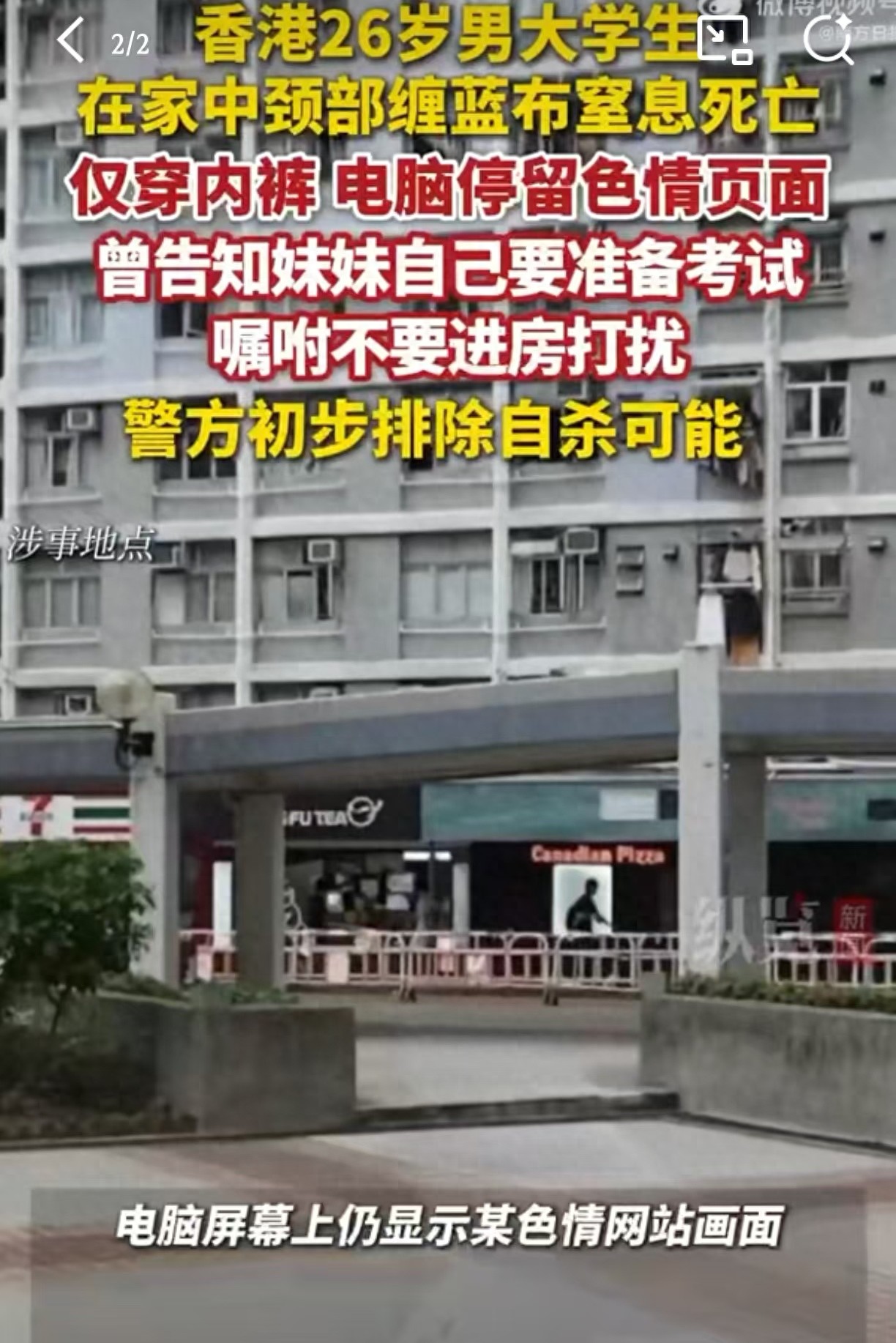10月21晚,香港25岁的大二学生黄某,告诉家人自己要“备考”,要求他们不要进他房间打扰他,就紧闭房门。两天之后,其父看到这么久了儿子还没有出来,敲门也没有呼应,于是就破门而入。