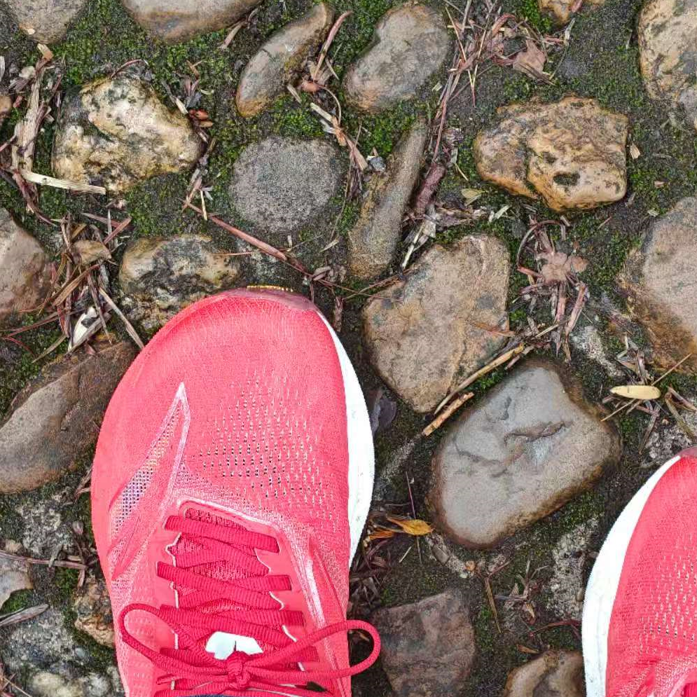 第三次我来到了一个以卵石路为主的小公园,内部有不少坡,总爬升100+米,这一次,终于没有感觉震脚了。不过我总觉得上下坡拐弯时有些不灵活,可能是我冬天长膘+之前病了一场的原因。前三次跑完后,我的小腿和跟腱感觉负荷比较大,脚底和足弓都出现了比较明显的酸痛感,应该是平时后跟落地的我不适应它赤足跑步的设计理念,如果平时习惯前掌落地的应该会比我更适应。