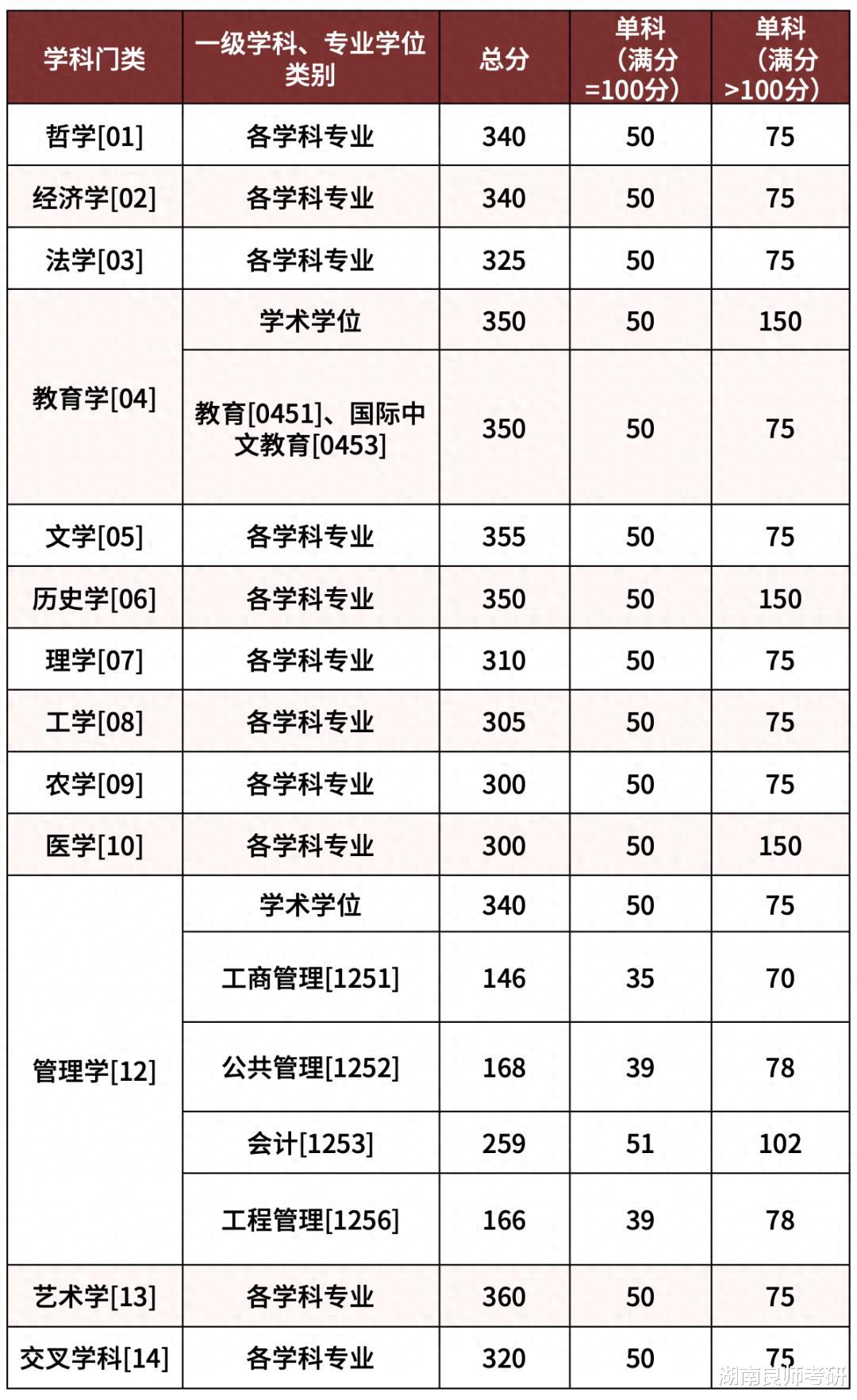 湖南大学2026年硕士研究生招生复试基本分数线正式发布!