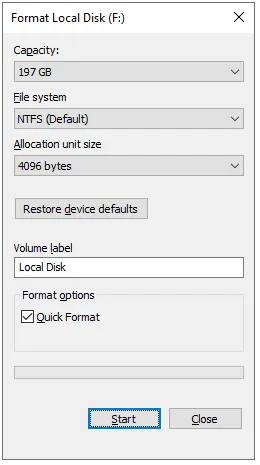 步骤 4:选择“快速格式化”或取消选中它以获得完整格式。最后点击“开始”,数据就会被删除。