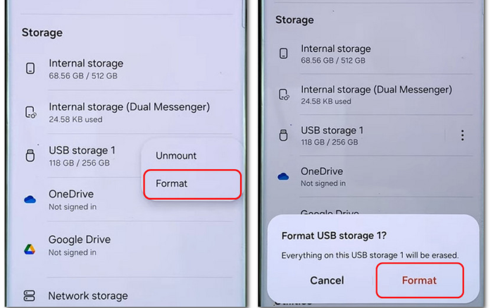 步骤 3:在可用存储选项列表中找到您的 SD 卡。接下来,点击 SD 卡,然后选择“格式化”或“格式化 SD 卡”。