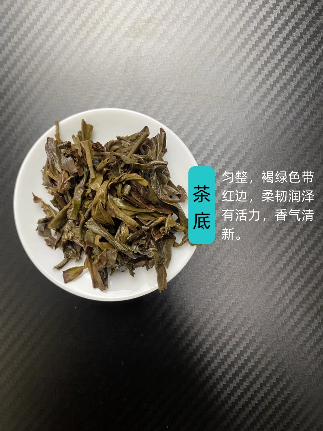 叶底,匀整,褐绿色带红边,柔韧润泽有活力,香气清新。