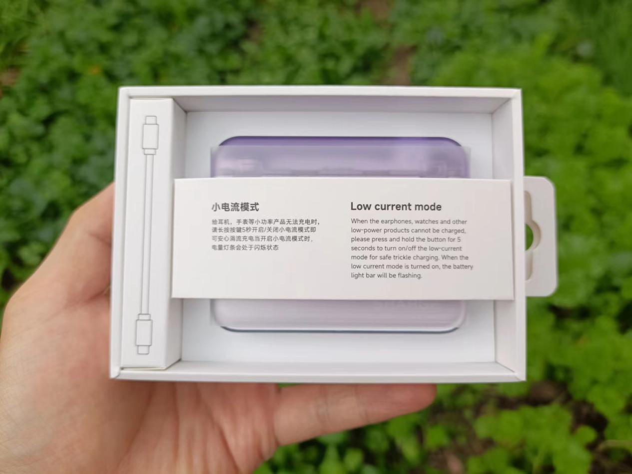 不得不说这么小巧精致的随行移动电源,用起来真的很棒,手感温润、握在手中触感出色。搭配透明收纳包,时尚时尚最时尚,渐变粉紫色的充电宝装在透明的小包包里,女生出行的随身装饰,不仅拉风,关键还实用。