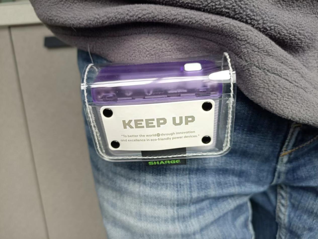 闪极配套的这个收纳包不仅可以很好地保护充电宝不被刮花,挂扣设计还可以轻松挂在背包上面,无需每次充电前在背包里摸索半天。它甚至还可以直接挂在裤袢上,不用取出就可以直接充电,出行就是街上最靓的仔。