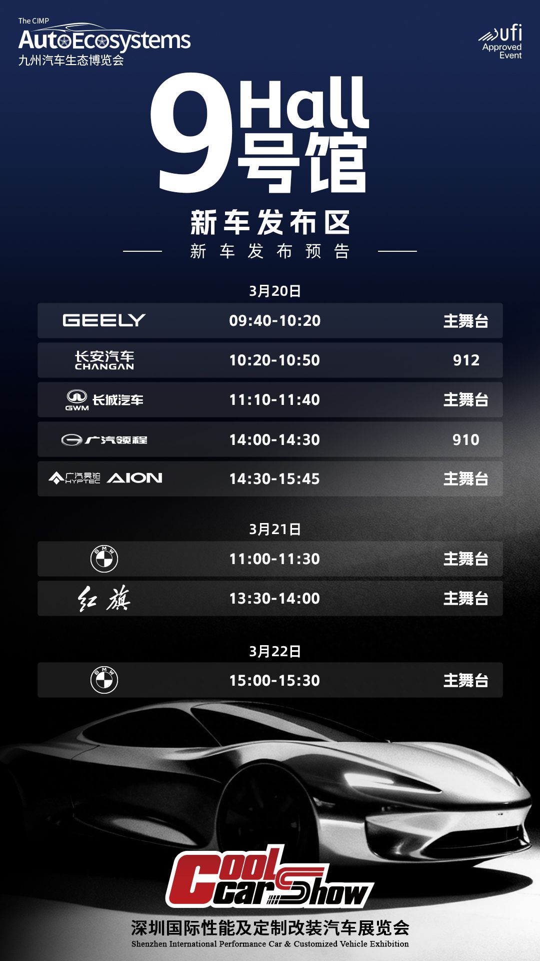 同时在9号馆,吉利、长安、长城、广汽、宝马、红旗等6家车企将携2026年度新车重磅首发。