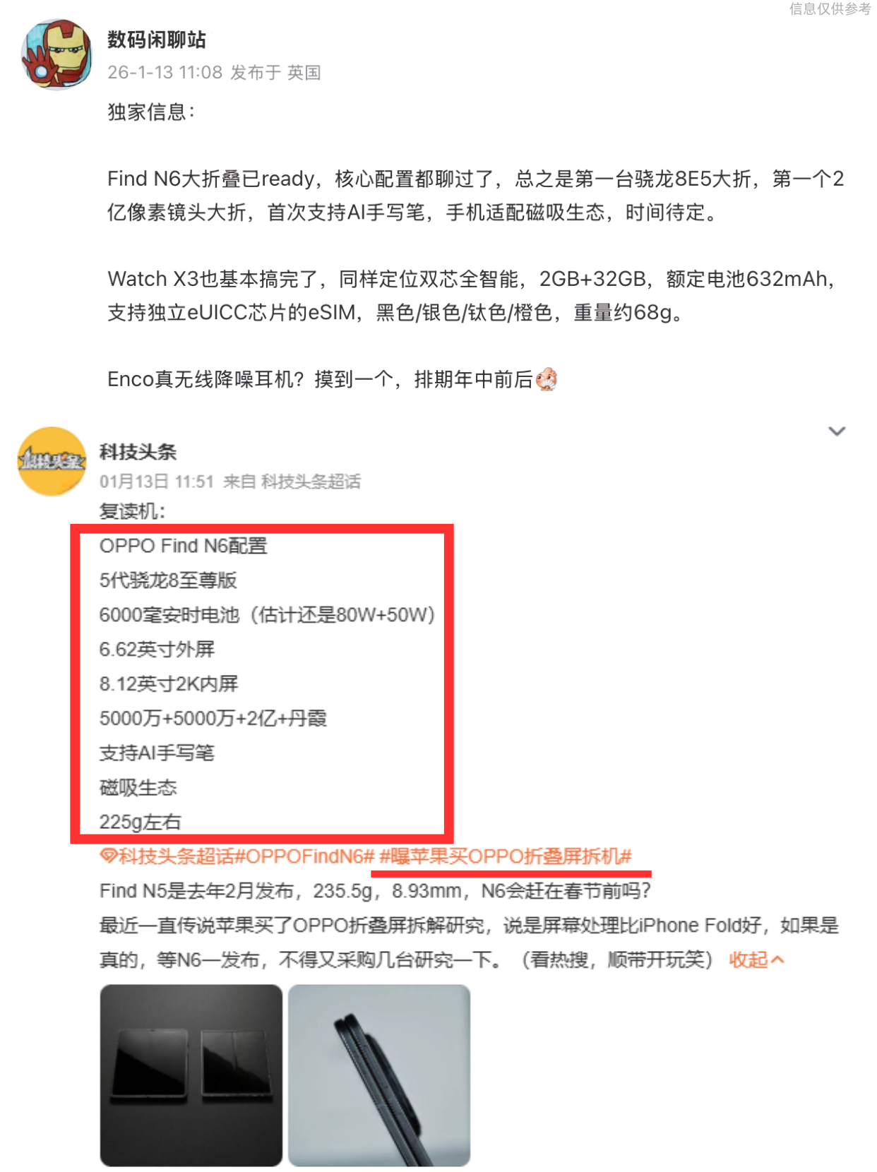 说回OPPO本身,接下来OPPO还有大动作,包括Find X9 Ultra和大折叠Find N6。今年还是折叠屏大年,连苹果都下场折叠屏了,据传苹果此前还买了Find N5拆机研究折痕?