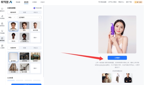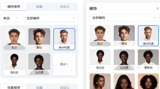 然后我们可以直接选择系统提供的模特脸部预设,当然你也可以上传想要换脸的模特照片。