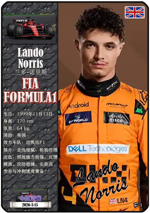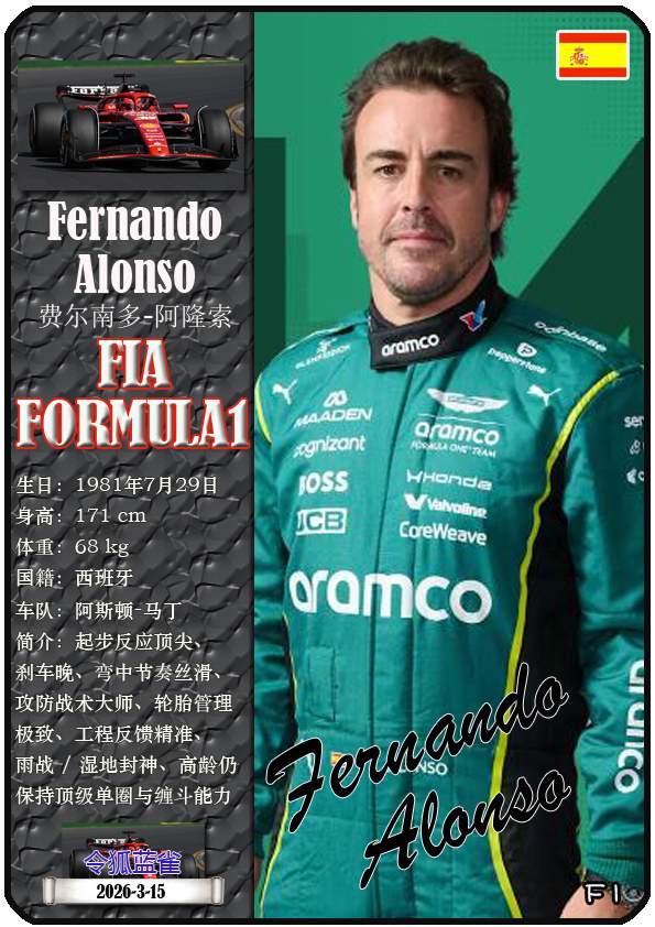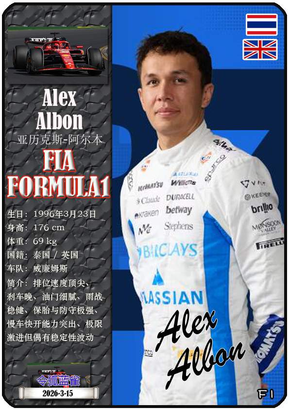 2026年世界一级方程式锦标赛中国大奖赛是2026赛季世界一级方程式锦标赛的第二站比赛,于3月13日至15日在上海国际赛车场举办。本期盘点参赛的22名车手(按中文姓名拼音字母排序):