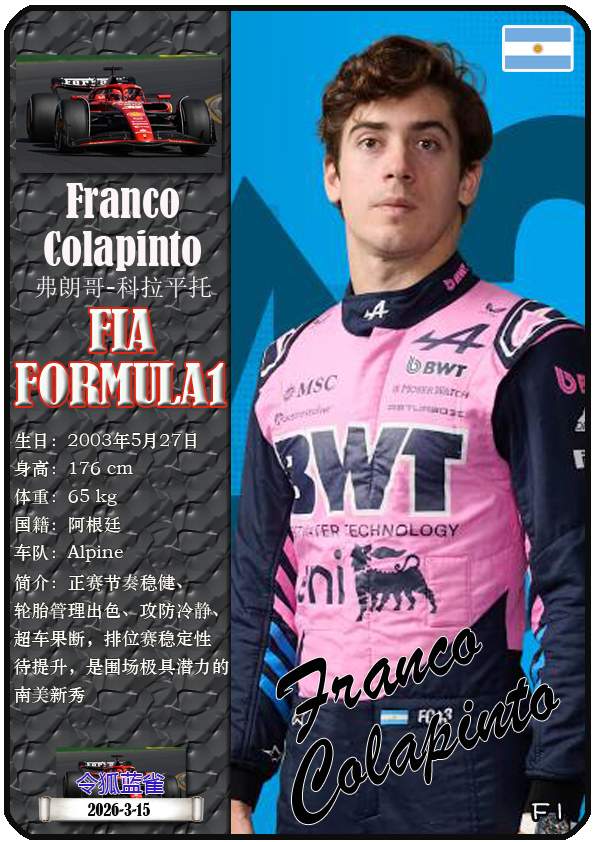 本篇内容数据来源:F1官网,https://www.formula1.com/en/teams/alpine