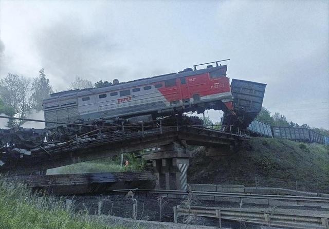 5月31日晚上十点50左右,俄罗布斯良斯克州维戈尼奇到皮尔希诺的公路桥,突然被炸,而且桥体垮塌的时候,桥下正过着一列客运火车,坍塌的石头正好砸在了火车上。